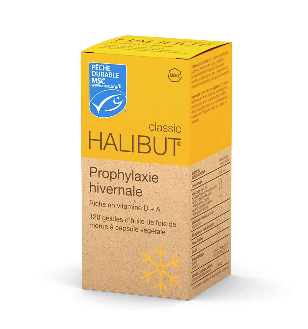 La vitamine D est indispensable pour un système immunitaire fort. Pourtant, le corps ne peut la synthétiser que si la peau est assez exposée aux rayons du soleil au quotidien. C’est pourquoi l’apport en vitamine D par les aliments est vital, en particulier pendant les mois peu ensoleillés de septembre à mars. Une capsule de HALIBUT® classic suffit pour couvrir les besoins journaliers en vitamines A et D.