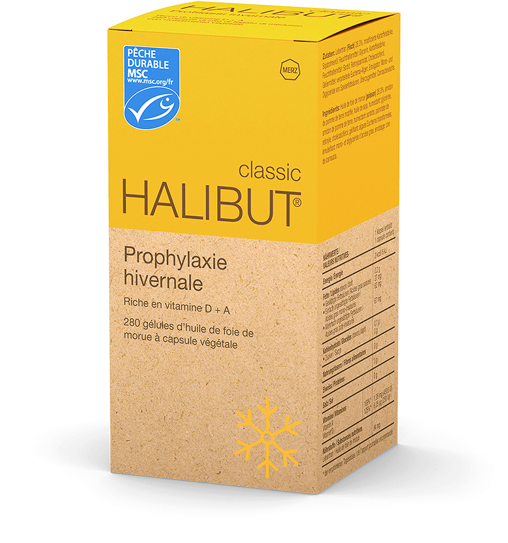La vitamine D est indispensable pour un système immunitaire fort. Pourtant, le corps ne peut la synthétiser que si la peau est assez exposée aux rayons du soleil au quotidien. C’est pourquoi l’apport en vitamine D par les aliments est vital, en particulier pendant les mois peu ensoleillés de septembre à mars. Une capsule de HALIBUT® classic suffit pour couvrir les besoins journaliers en vitamines A et D.