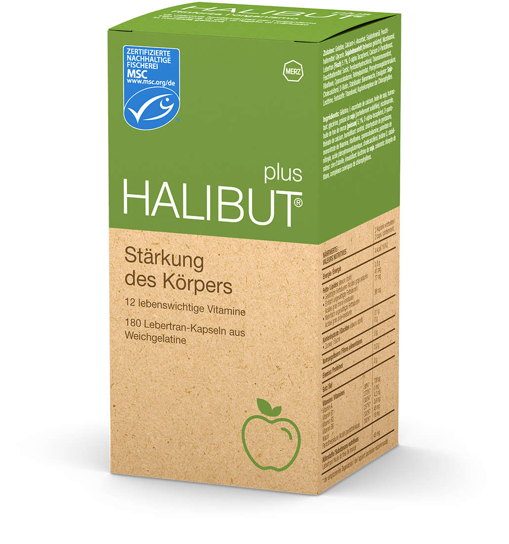 Vitamine sind für den Körper und ein funktionierendes Immunsystem unabdingbar. HALIBUT® plus ergänzt die tägliche Nahrung auf natürlicher Fischölbasis und versorgt den Organismus mit den Vitaminen A und D sowie 10 weiteren lebenswichtigen Vitaminen.